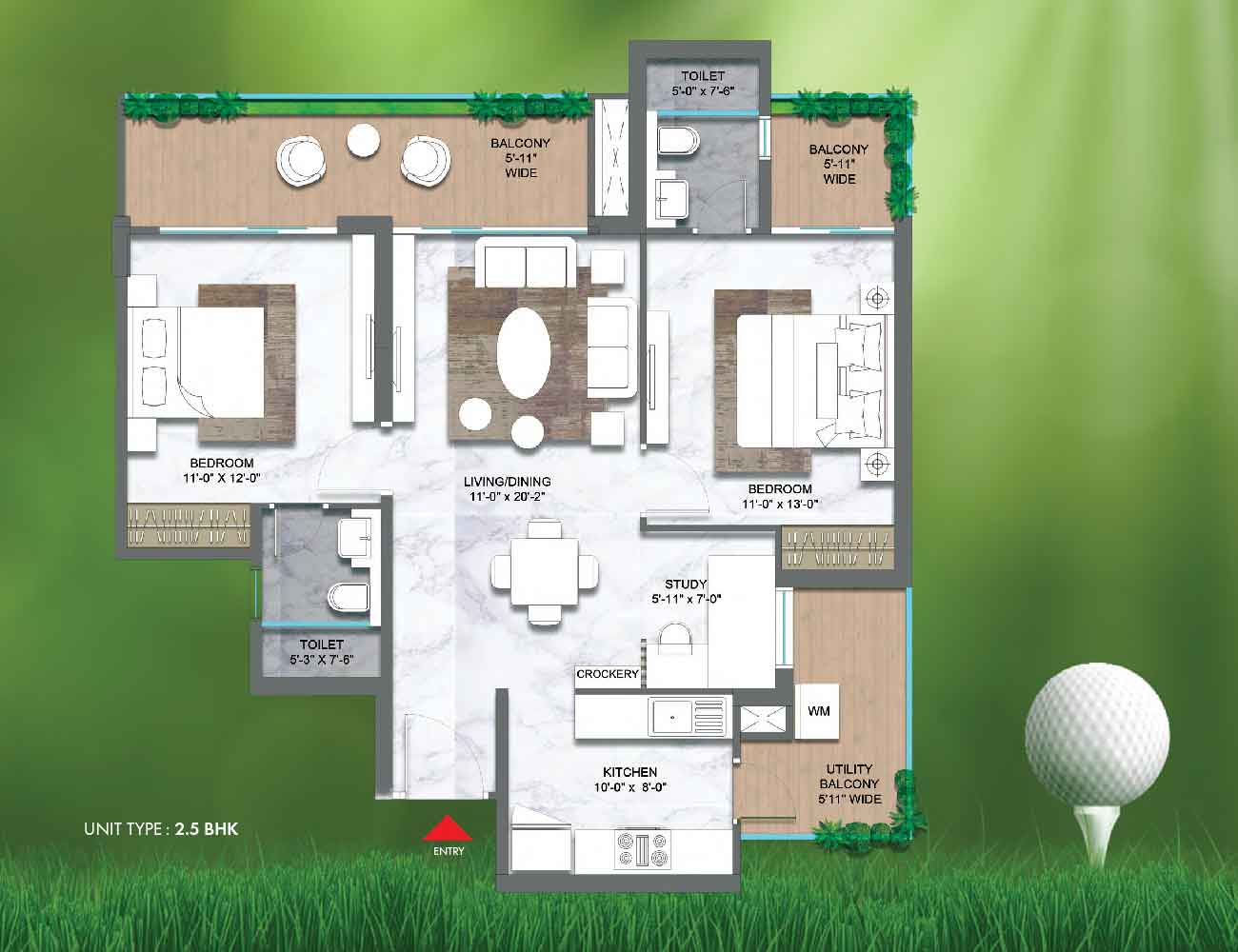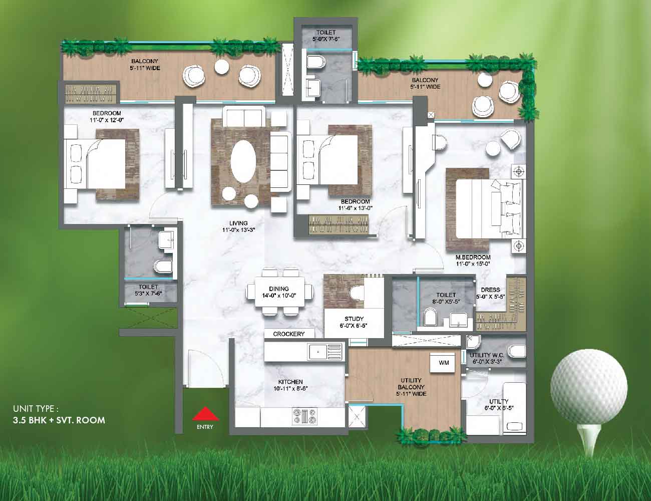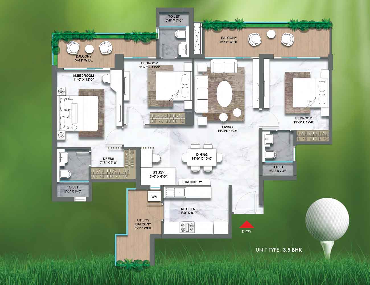 M3M Golf Hills is a premium residential project located in Sector 79, Gurugram. True to its name, it’s a golf-themed community with apartments that offer spectacular views of the Aravalli hills and a golf-themed central landscape. The project is spread across a large area and features a variety of luxurious apartment configurations, including 2.5, 3.5, and 4.5 BHK residences.